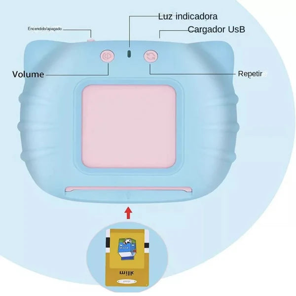 Usando excelentes efectos de sonido e imágenes coloridas, enseña el reconocimiento audiovisual de palabras básicas, manteniendo a tu niño alejado de las pantallas y protegiendo su visión.